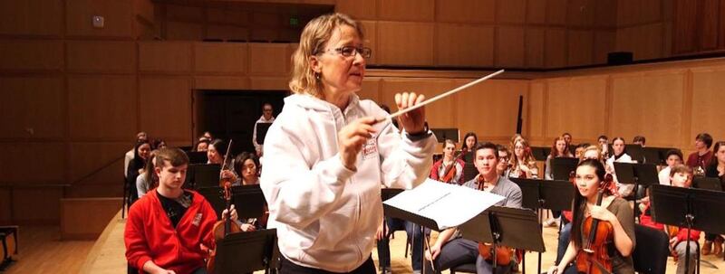 Sometimes she conducts with huge, sweeping motions. Sometimes she crouches among her musicians. She is graceful and energetic. She is both a teacher and a cheerleader.