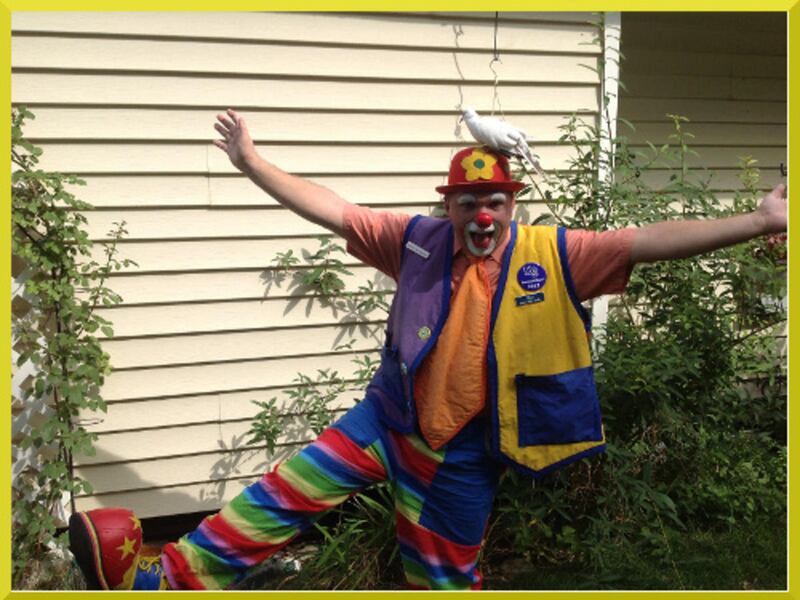 Of course, Hattingh is a different sort of clown (she actually identifies as an entertainer). She said she doesn’t do the full-face clown makeup. She wears bright colors, and wears a clown wig (something she picked up six months ago). She draws a heart on one cheek, balloons on another cheek and paints the tip of her nose green with sparkles. Her lips are usually red and shaped like a heart.