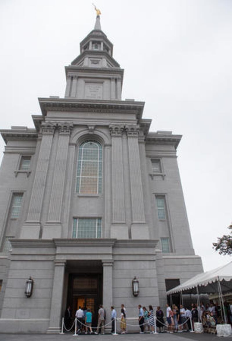 A group of visitors line up to take a tour of the Philadelphia Pennsylvania Temple of The Church of Jesus Christ of Latter-day Saints in Philadelphia, Pa. on Aug. 10, 2016. | Alan Murray