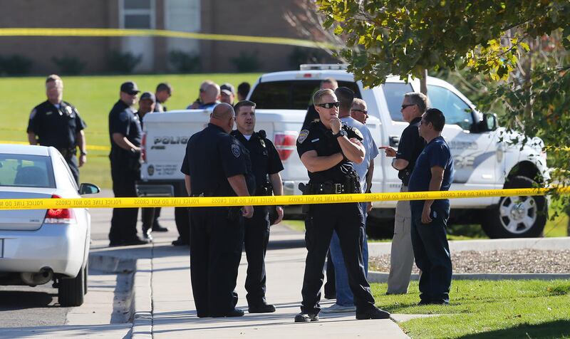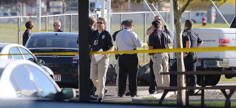 The shooting occurred few minutes after 3 p.m. on the north end of the school grounds, 615 E. 8000 South, just as class was letting out for the day, said Sandy Police Sgt. Dean Carriger. The younger teen shot the 16-year-old twice, the sergeant said.