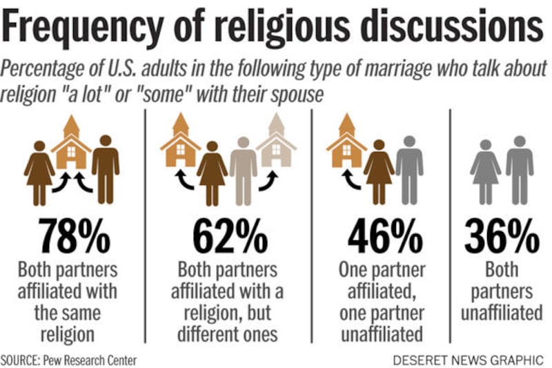 Partners who practice different faiths may struggle to pray together, which relationship experts sometimes suggest couples do in times of conflict, the Deseret News reported earlier this year.