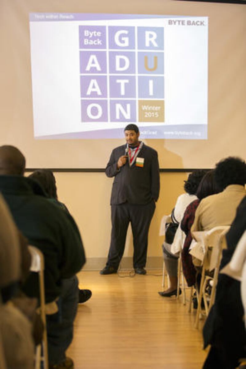 Behrooz Bakhtiary inspires his fellow Byte Back graduates as the student speaker at the graduation ceremony in 2015. | Byte Back