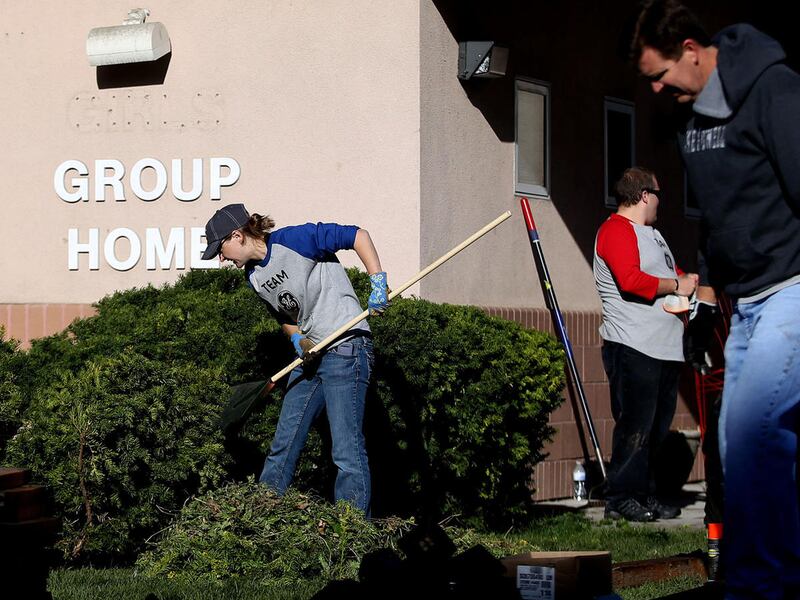 Katie Baker and Lori Fry of GE Healthcare's surgery division clean up the flower beds at Salt Lake County Youth Services in South Salt Lake on Thursday during the company's Community Service Day. GE employees made improvements in several outdoor areas to enhance the space and provide youths utilizing the facility's services with welcoming play areas. The projects included revitalizing the challenge exercise course, sprucing up the playground, planting trees, restriping the parking lot, building a shed, reconditioning the soccer field, creating a shaded rest area and building a fence to provide safety from a nearby railroad line. This is the sixth year of GE Community Service Day in Salt Lake City. Salt Lake County Youth Services' mission is to provide children, youths and families in crisis with immediate safety, shelter and support.