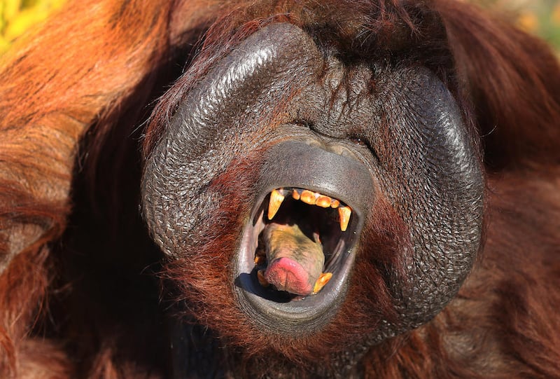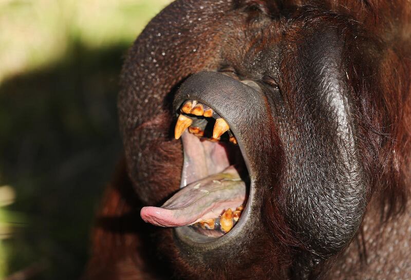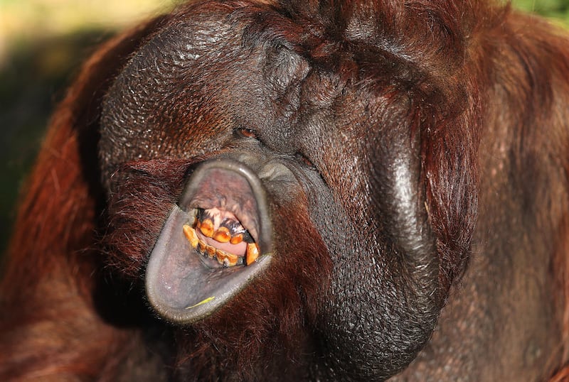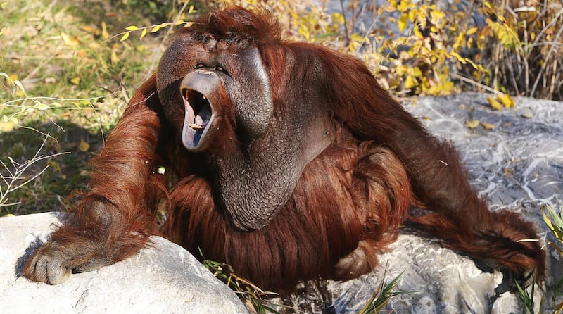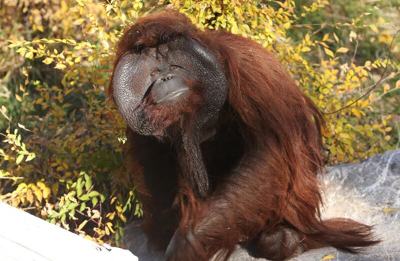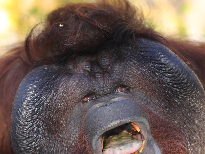 Mia, a 27-year-old male orangutan and Hogle Zoo's newest resident, asks for some vegetables and fruit in Salt Lake City on Tuesday. Mia (pronounced MY-uh) came from the Greenville Zoo in South Carolina and moved into the Great Ape building at the end of September, where he has spent the past several weeks getting better acquainted with his fellow orangutans, 11-year-old Acara and her little brother, 2-year-old Tuah. Mia came to Hogle Zoo as part of the zoo's participation in the Orangutan Species Survival Program. Mia is currently on exhibit daily.
