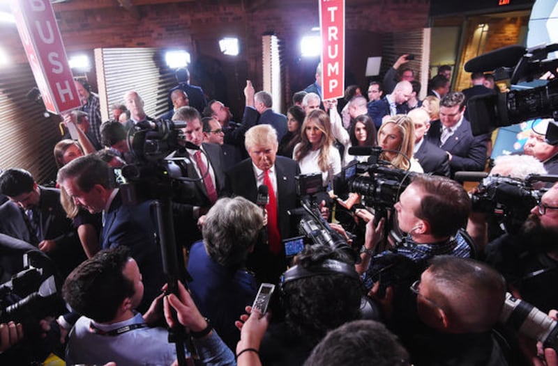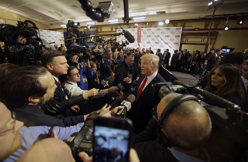 Republican presidential candidate Donald Trump and his wife Melania speak to the media after the CBS News presidential debate at the Peace Center on Feb. 13, 2016, in Greenville, S.C. | Rainier Ehrhardt, Associated Press
