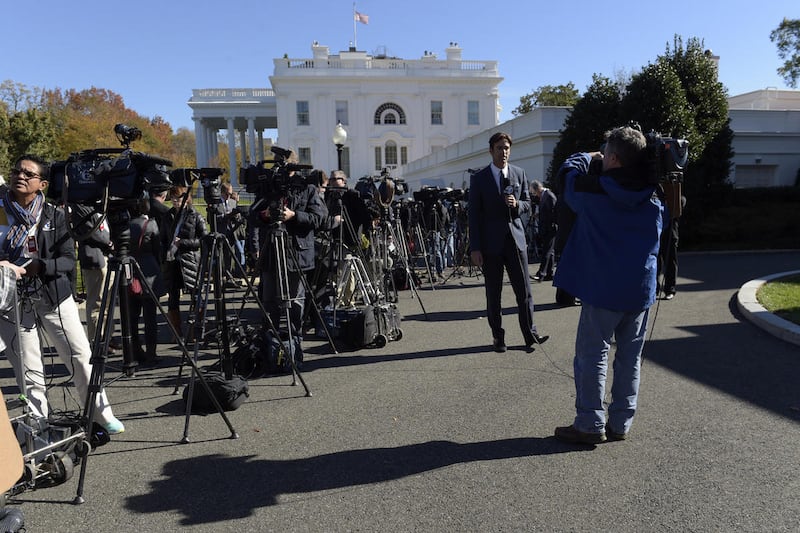 Journalists wait outside the White House on Nov. 10 as President Barack Obama and President-elect Donald Trump meet inside. | Susan Walsh, Associated Press