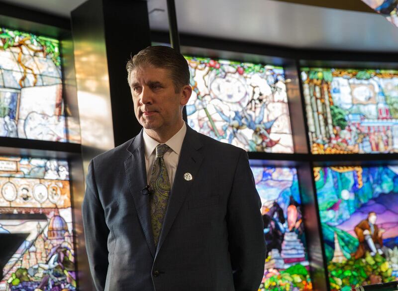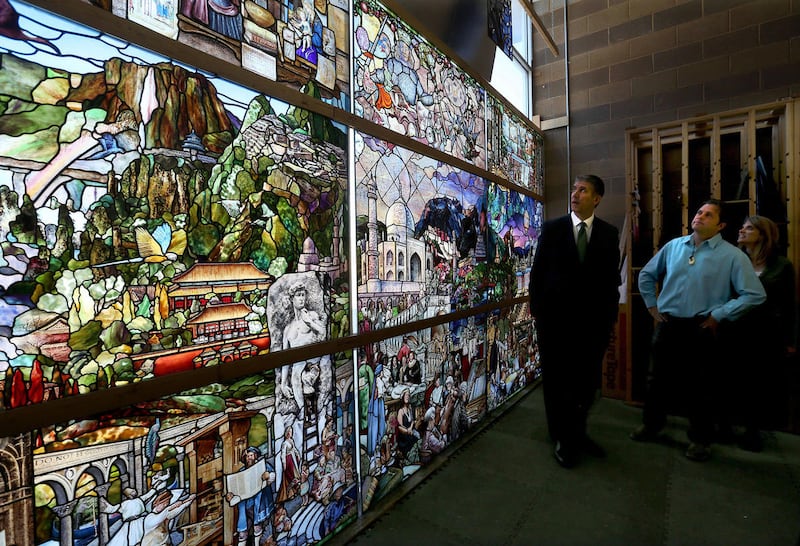 The massive, 200-foot-long installation is the brainchild of Lehi-based stained glass artist Tom Holdman and UVU President Matthew Holland.