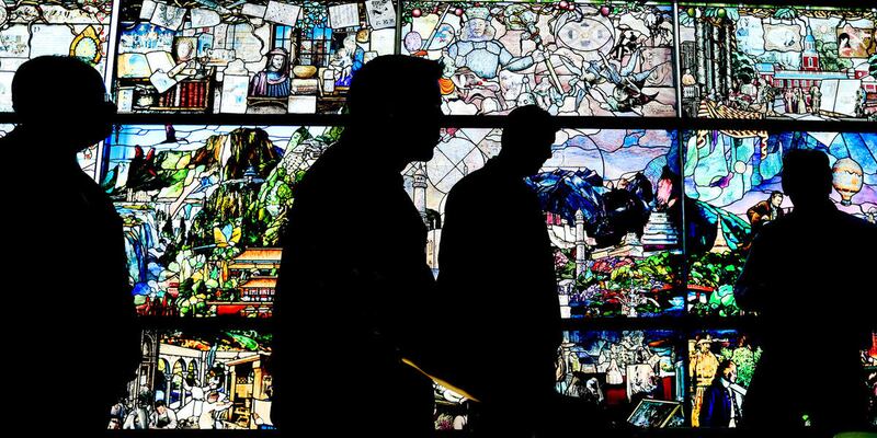 Along 80 panels and using 60,000 pieces of stained glass, the creation winds its way through the Roman empire, the building of the Jameh Mosque in Iran, the reign of Kublai Khan, the invention of the telephone, the Harlem Renaissance and more.
