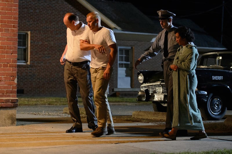 Then Mildred discovers she’s pregnant, and she and Richard decide to get married. At that point, an invisible line is crossed. Fearing the hassles of Virginia state law, the Lovings get married in nearby Washington, D.C., but upon their return, they are taken from their bed in the middle of the night and thrown in jail.