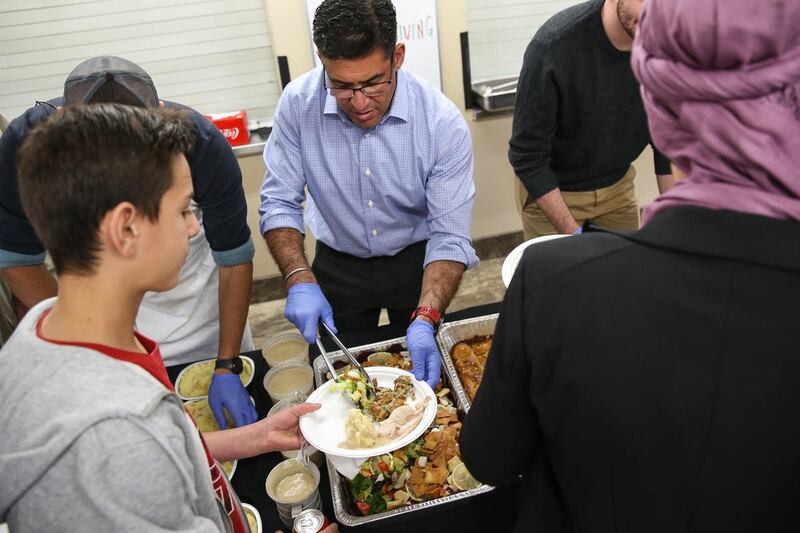 Of course there was turkey and stuffing and mashed potatoes, but the table was replete with traditional foods from Syria as well, brought by families grateful for the opportunity to share.