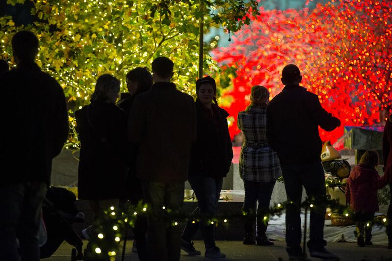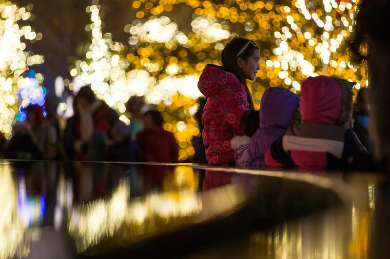 Between the Gallivan Center and Temple Square, roughly 350,000 Christmas lights flickered on for the first time Friday, the center reported. Aside from those displays, downtown Salt Lake also bustled with a constant stream of shoppers at City Creek Center, musicians playing Christmas music on several street corners and a contingent of savory smells from busy food trucks.