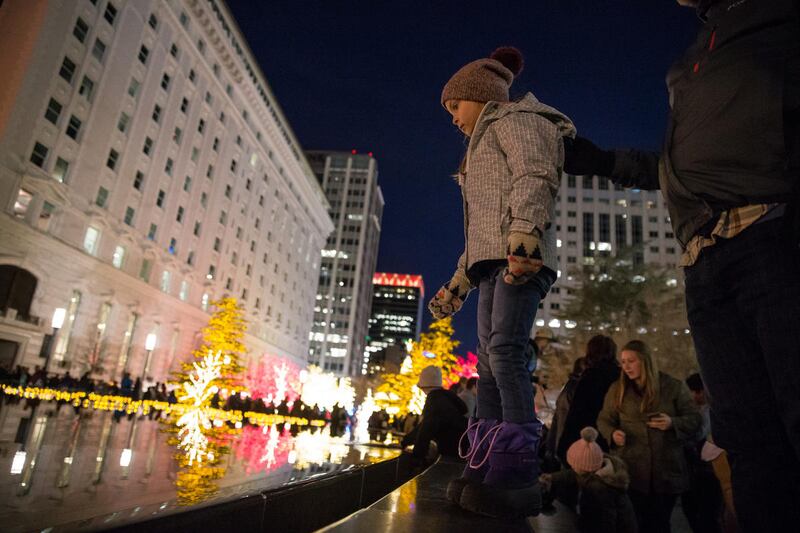 SALT LAKE CITY — The Christmas spirit blanketed downtown Salt Lake City on Friday evening when thousands of spectators were treated to the season's unveiling of the Christmas lights at Temple Square and the Gallivan Center.