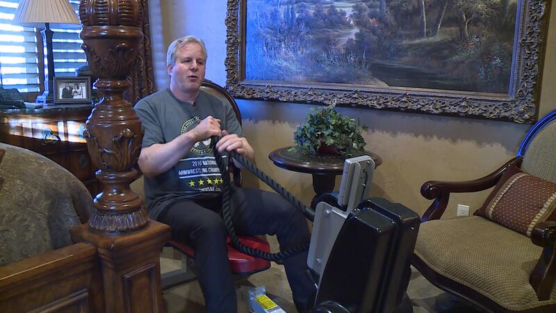 "I called the factory and had them change it to double the tension. … So it's twice as hard as the normal hard," he said. "It simulates arm-wrestling almost perfectly."