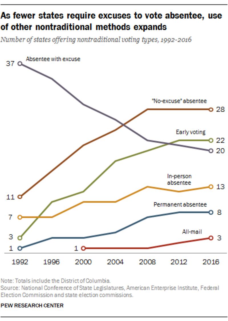 It seems these nontraditional ways of voting have been on the climb in recent years.