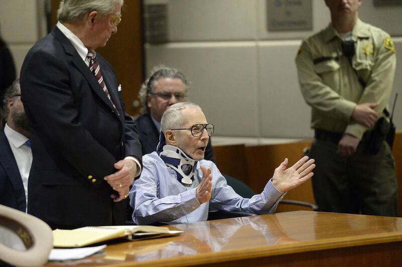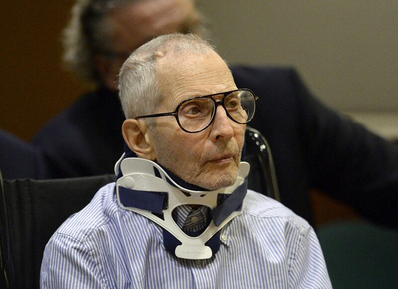 LOS ANGELES — Wearing a neck brace and seated in a wheelchair, looking pale and frail, real estate heir and documentary star Robert Durst pleaded not guilty to murder, more than a year and a half after a live microphone recorded him muttering, "killed them all."