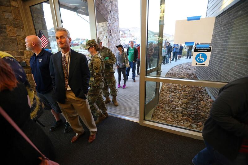 Utah Elections Director Mark Thomas said before the polls closed that results would be delayed because of long lines at some voting locations. All voters still in line when voting locations closed, he said, would be allowed to vote.
