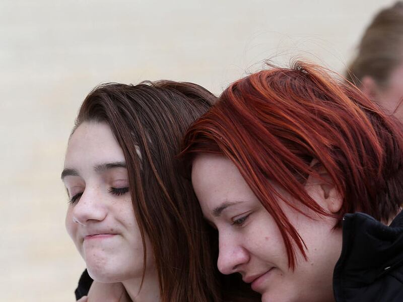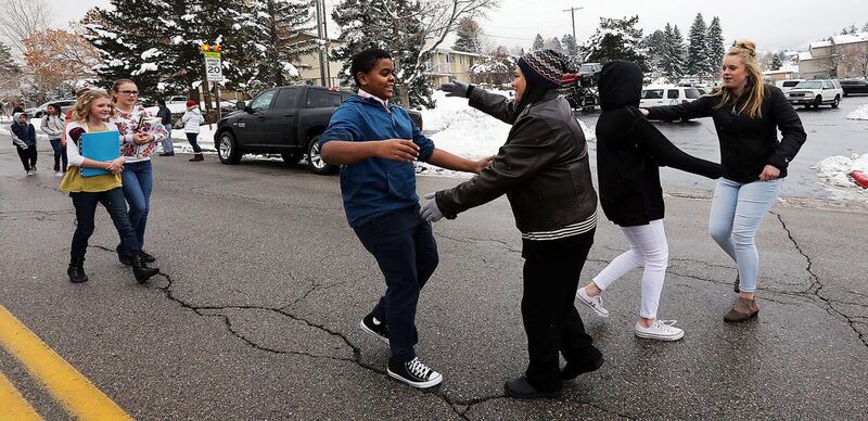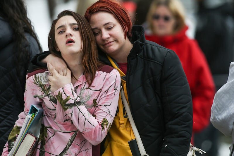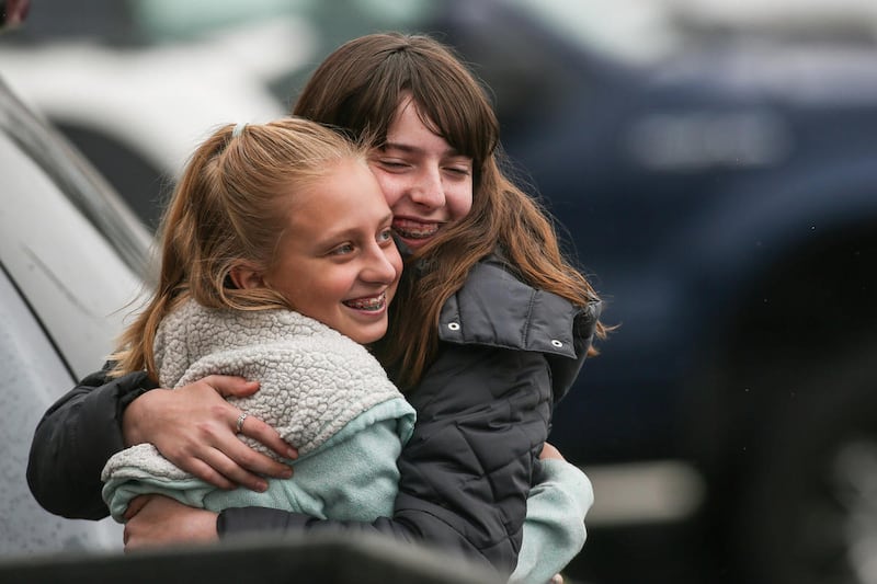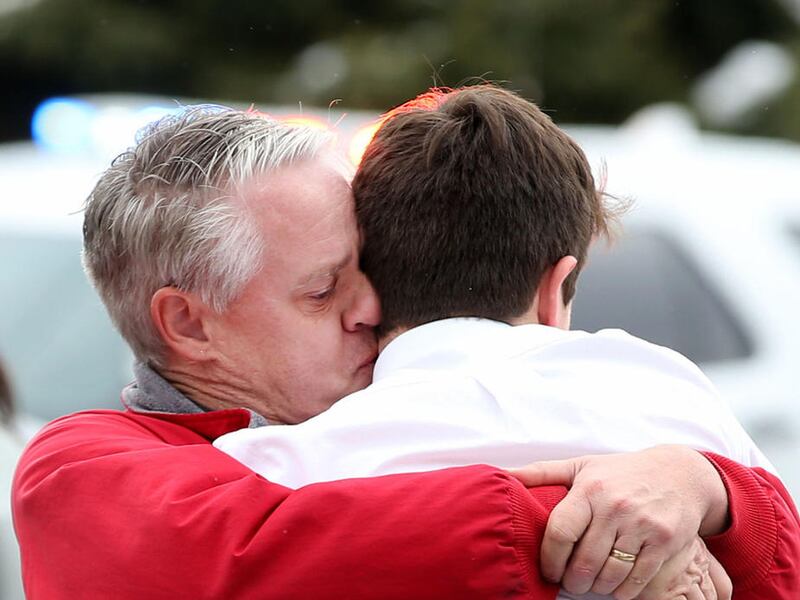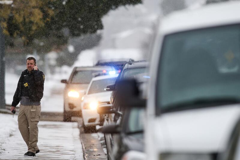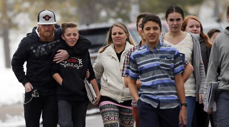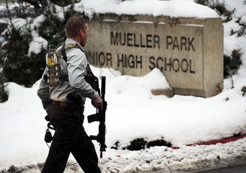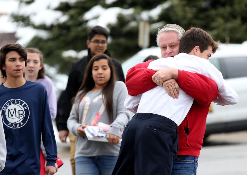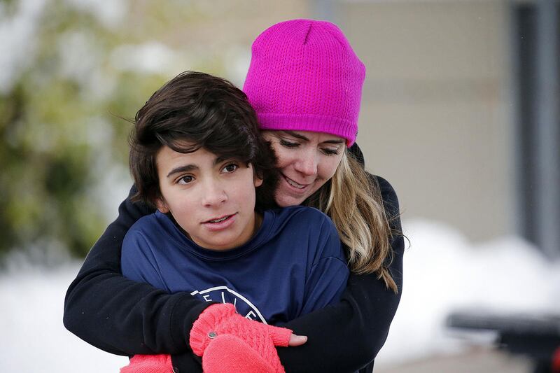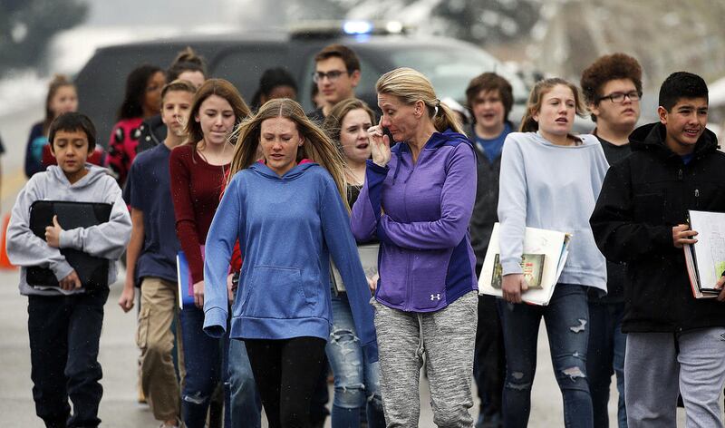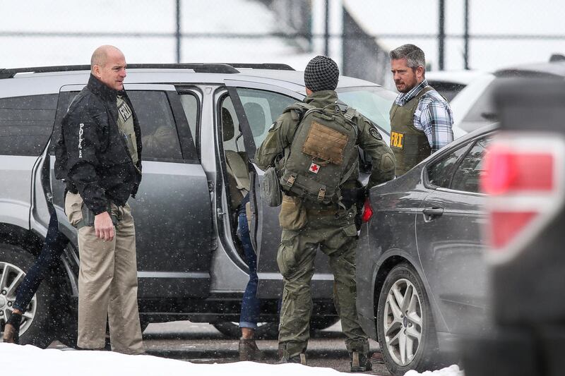 Dozens of anxious parents gathered outside in the snow and at an LDS meetinghouse across the street waiting to take their children home. Many parents and neighbors embraced as they arrived, some shedding tears and others making small jokes. Some were able to text their children inside the building. At least one parent said his son was nervous, but he felt a sense of reassurance because of the police response.