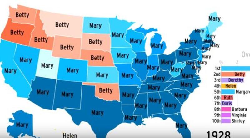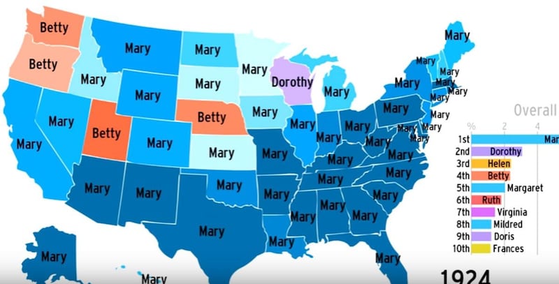Here’s an example: In 1924, Utah, along with Nebraska, Oregon and Washington, have “Betty” as the most popular baby girl name.
