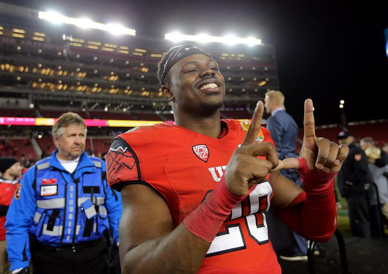 SANTA CLARA, Calif. — One of the most talked-about stories of the college football season came to an end with Utah’s 26-24 victory at the Foster Farms Bowl. Running back Joe Williams, who retired from football a few weeks into the season, then un-retired after a bevy of injuries took out his teammates, finished his collegiate career in a big way. After collecting 222 yards — a Foster Farms Bowl record, scoring a touchdown and setting up the game-winning field goal by Andy Phillips with a few monstrous rushes, Williams earned the game’s Most Outstanding Offensive Player honors.