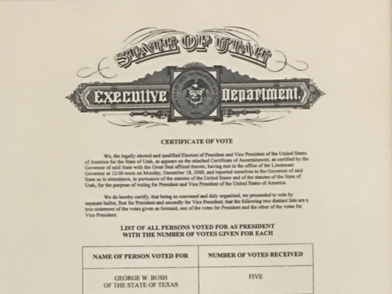 Republican Ron Fox was one of Utah's five electors at that time. He received a letter from Bush campaign strategist Karl Rove after the Supreme Court decision and Gore's concession speech, warning of possible shenanigans.