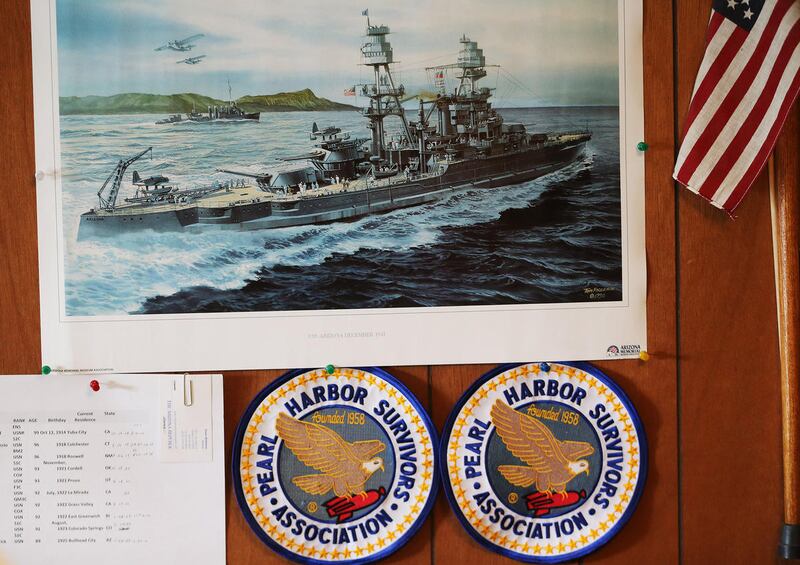He was expected to be joined at the special Pearl Harbor commemoration ceremonies by fellow Arizona survivors Don Stratton, Lauren Bruner and Lou Conter (due to failing health, a fifth survivor, Lonnie Cook, was not able to make the trip). They’re all who's left of the 1,511 men who made up the Arizona’s roster the morning of Dec. 7, 1941, when five Japanese warplanes swooped down the Waimea Valley from the north and in just five minutes, between 8:01 a.m. and 8:06 a.m., dropped torpedo bombs that destroyed the 27-ton battleship and killed 1,177 members of its crew — almost half the total 2,403 who died in Pearl Harbor.