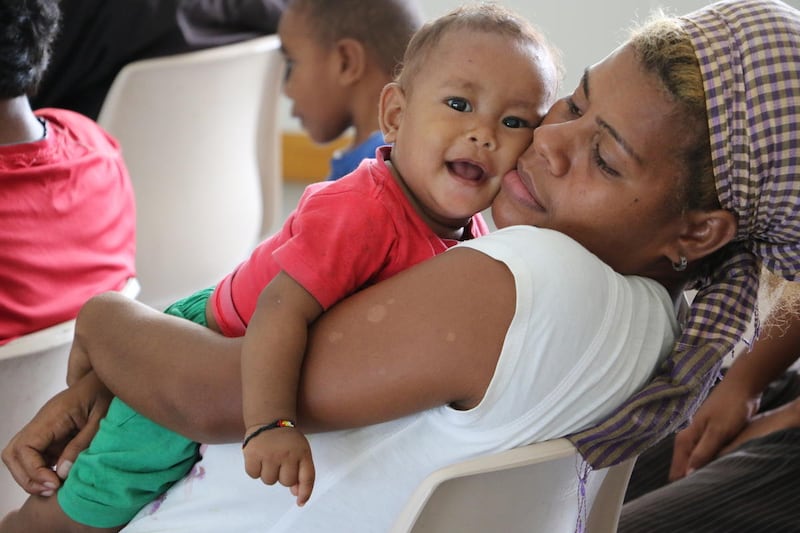 Back in Lami Town, Seruwaia, who has been a member of the LDS Church since 1995, used clean hose water to bath her 4-week-old grandson and then sat on the floor and watched her daughter dress the infant.