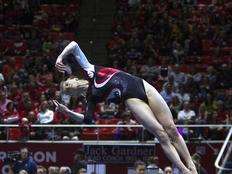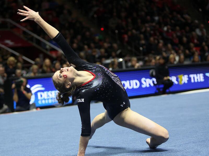 She salutes the judges flanking each side, grinning brightly under the LED lights dangling from the rafters as she begins her floor exercise routine. It’s at that point she morphs from a Utah gymnast to an Egyptian princess before the eyes of 15,000 spectators on this particular afternoon as her floor music blasts through the arena. In fact, one by one, each member of the team competing turns into one character or another as the rotation continues.
