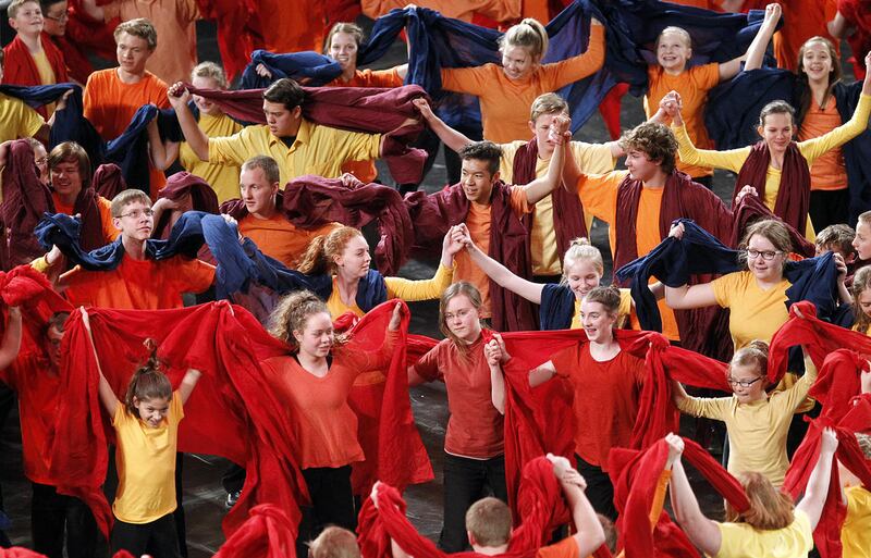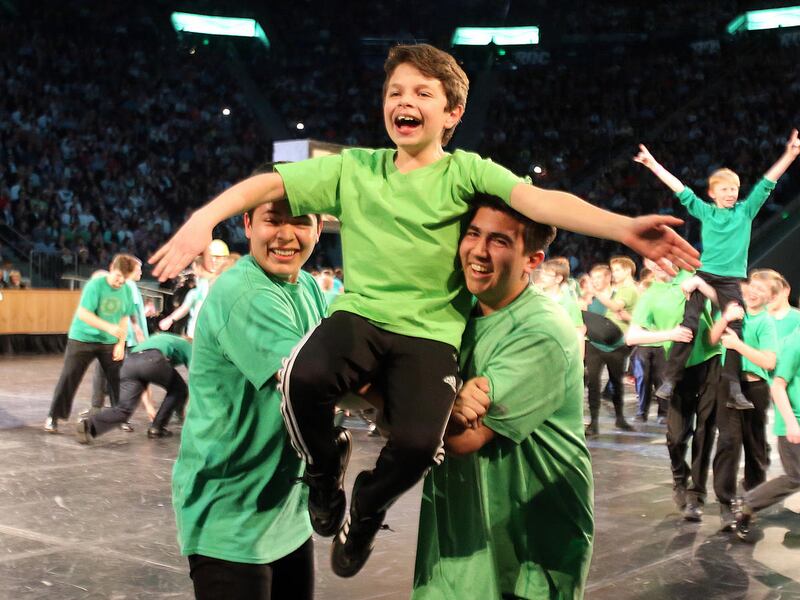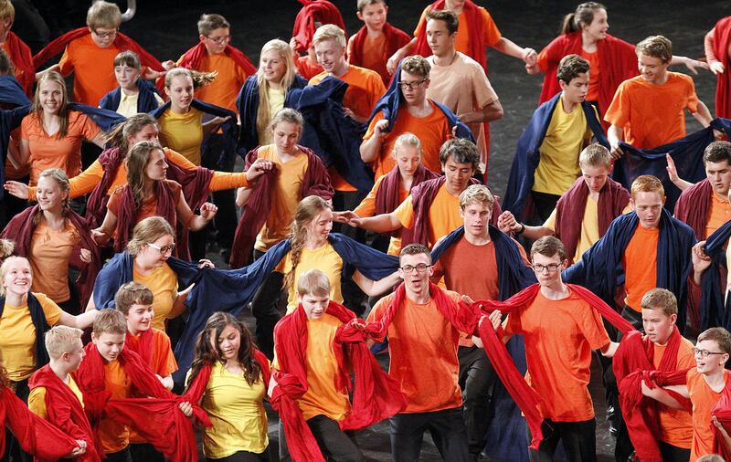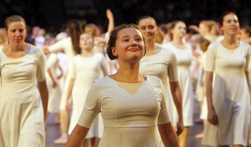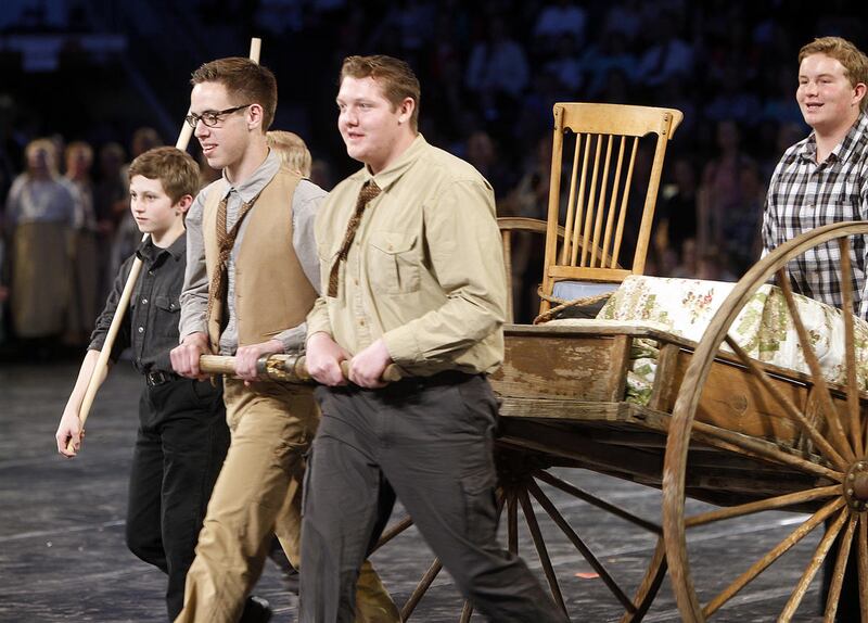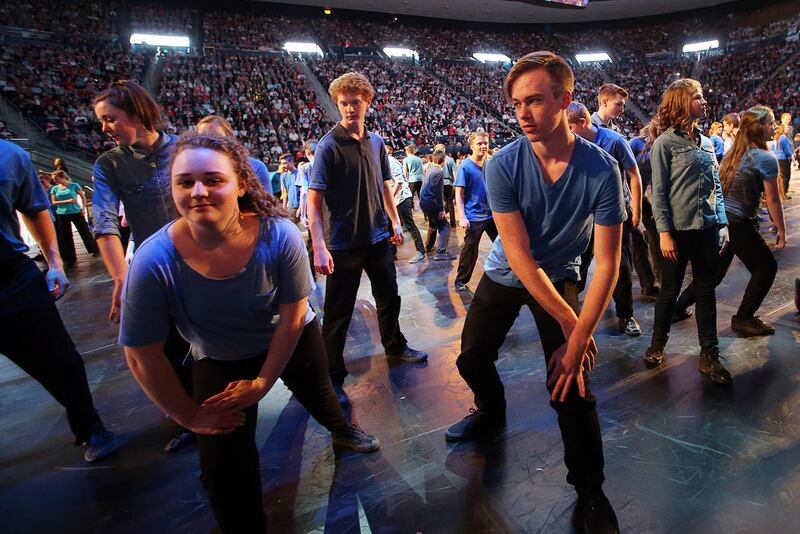 Drawing from that theme. youths performed for a Marriott Center capacity crowd and for others watching a live stream in local church buildings and at home on the Internet. Each dance number included hundreds of youths — all from the temple district's wards and stakes in central and south Provo and Springville — in costume dancing on the Marriott Center floor.