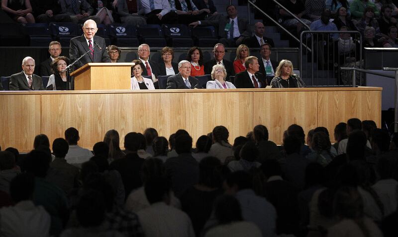 “I am thrilled to be with you,” Elder Dallin H. Oaks from the Quorum of the Twelve Apostles for The Church of Jesus Christ of Latter-day Saints told the audience. Recognizing his personal connection to Provo both as a youth and college student and later as BYU president, Elder Oaks spoke of the “countless memorable occasions” he has attended in the Marriott Center at Brigham Young University.