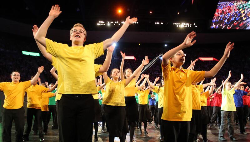 PROVO, UTAH — Four and a half years after President Thomas S. Monson announced plans for the Provo City Center Temple, some 4,500 youth joined together in song and dance on Saturday night to celebrate the completion of the 150th temple for The Church of Jesus Christ of Latter-day Saints.