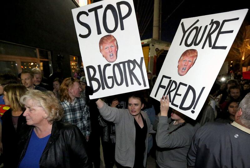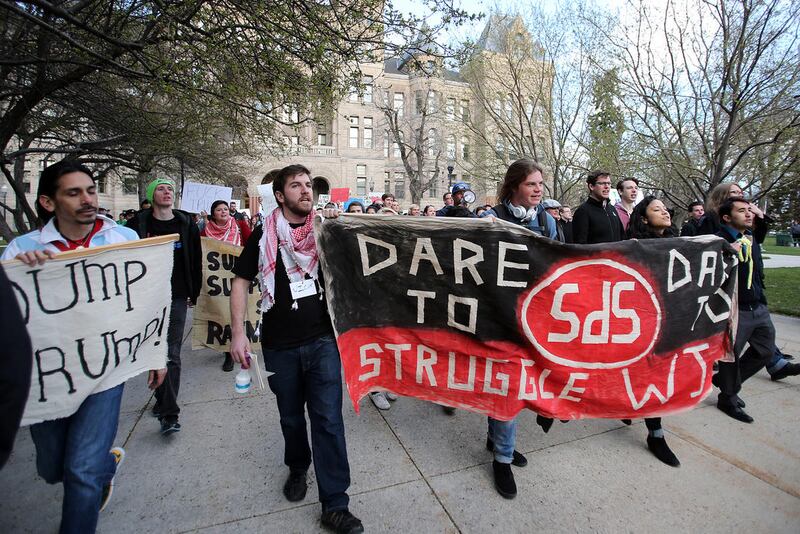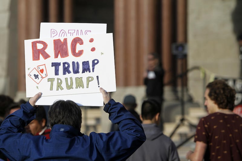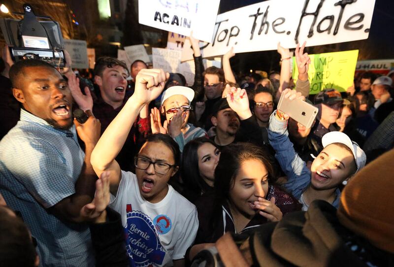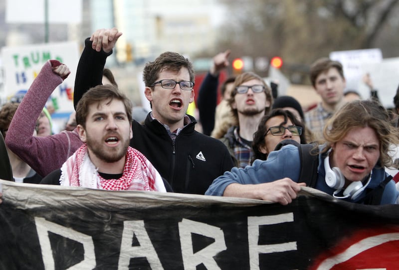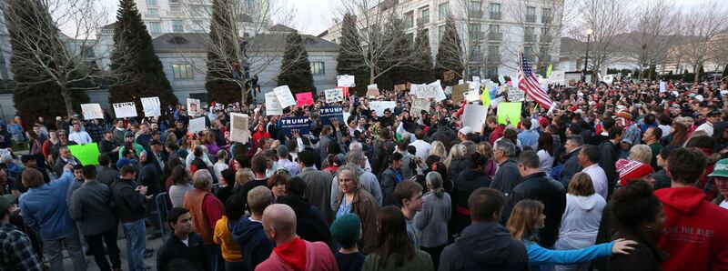 A few hundred protesters walked from Washington Square to the Infinity Event Center to express their disdain for the Republican front-runner.