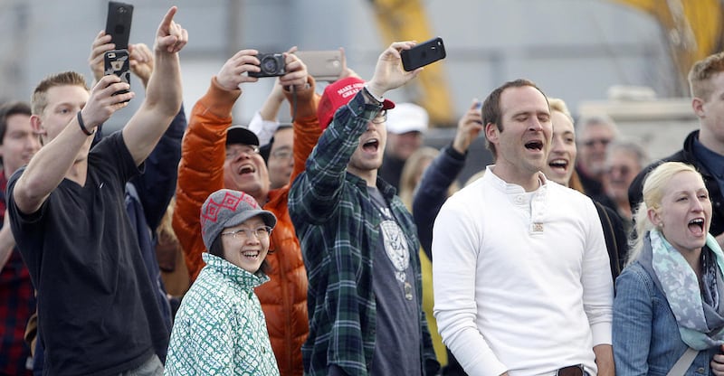 Richard, who declined to his give his last name, and his 11-year-old daughter, Sadie, found themselves at the center of the throng.