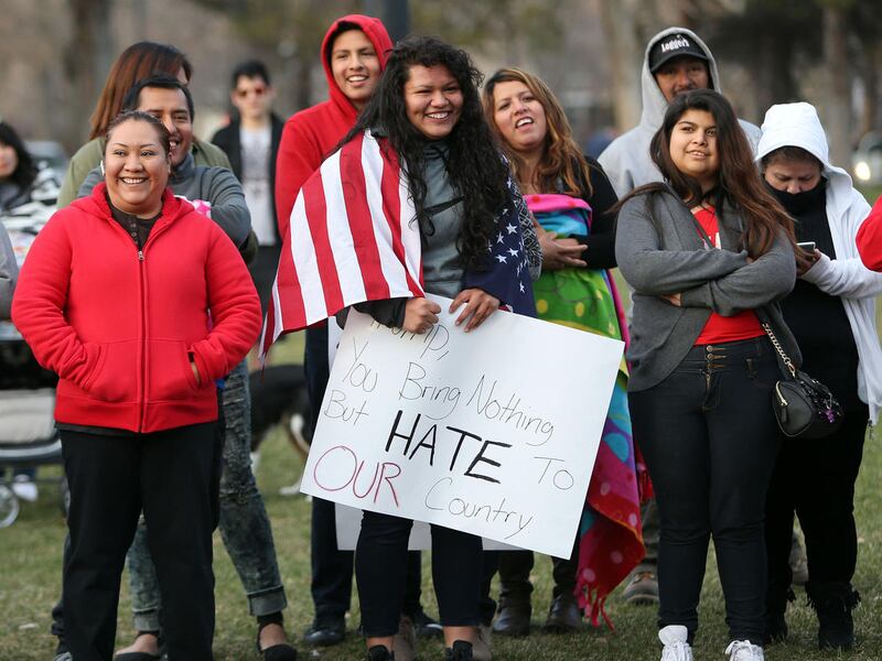 Also, several dozen Latinos staged a Trump protest at Liberty Park.