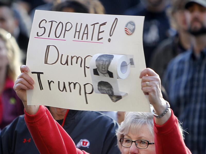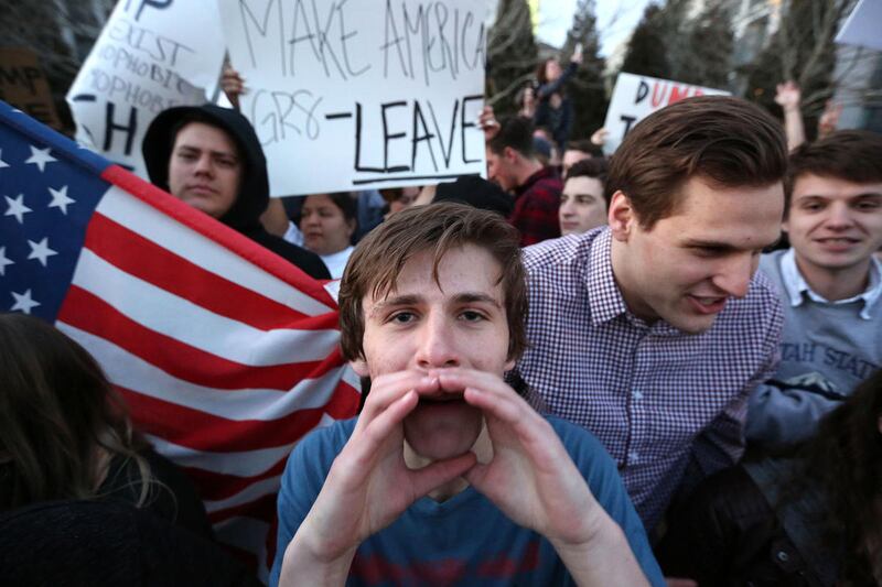 Another anti-Trump protester, Jiovan Melendez, from Lehi, said he is angry with Trump because, in his view, the candidate lies frequently and openly breeds hostility between Americans.