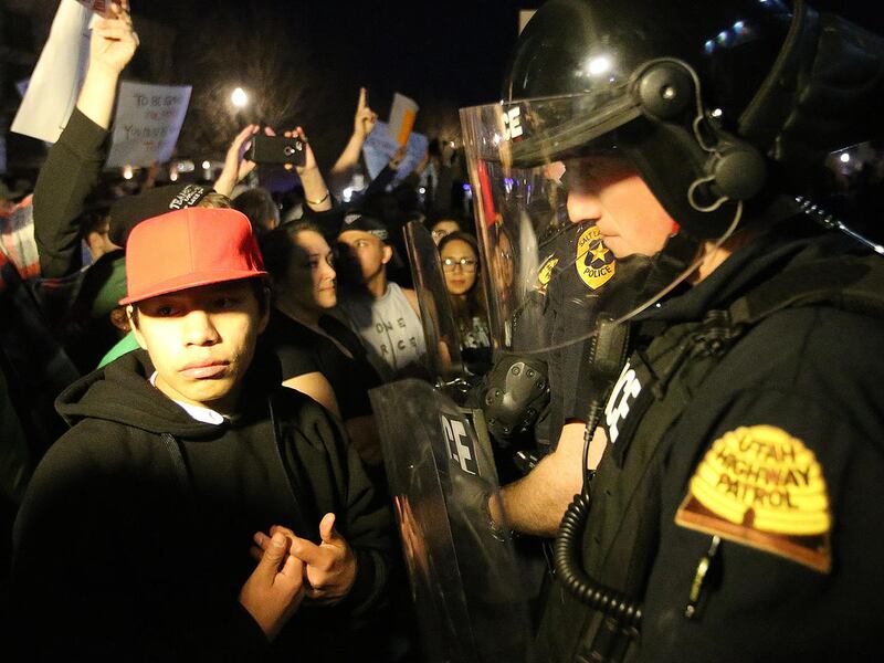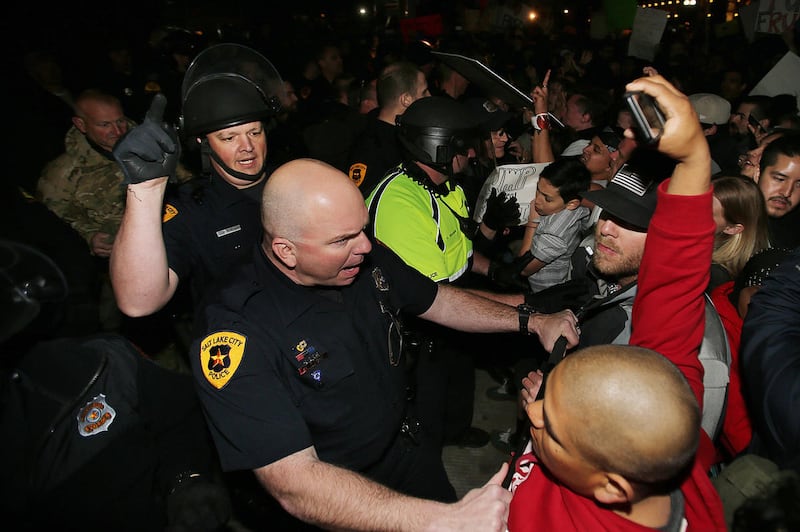 Salt Lake police said they didn't make any arrests, but stopped a couple people who were throwing rocks and bottles.