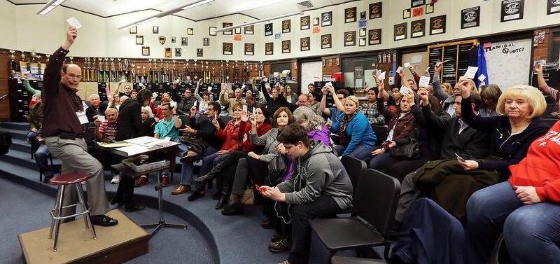 About 5,000 were expected at the elementary school voting site, but nearly 9,000 turned out, said caucus host Claire Francis.