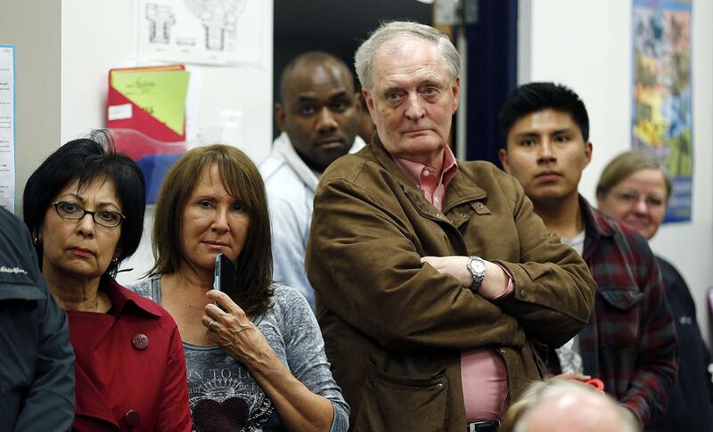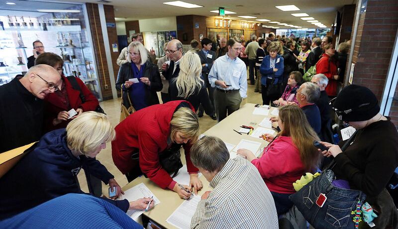 At a Republican caucus at Bingham High School in South Jordan, about 3,000 squeezed shoulder-to-shoulder in the hallways while trying to make their way to individual precinct meetings. Some who couldn't fit in classrooms stood outside in hallways while listening to the discussion through open doors.