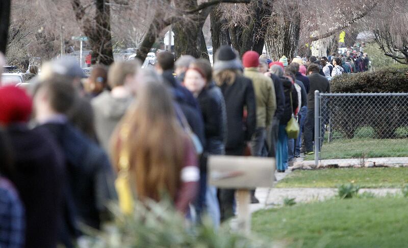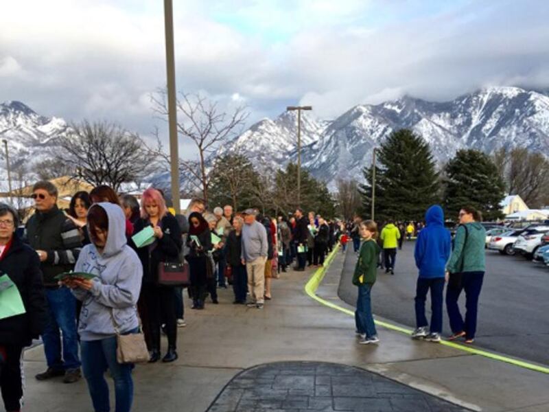 Thousands of people encircled a city block at one Salt Lake City school that was the site of a Democratic caucus, waiting for hours to cast ballots. Inside, they ran out of ballots, forcing caucus officials to send volunteers out to buy more reams of printing paper to print ballots, said Claire Francis, caucus host at Emerson Elementary.