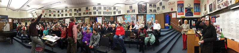 "Our lease on the room ended three minutes ago," Francis said at 9:03 p.m., with hundreds of people still waiting for ballots. "The count is definitely going to be delayed."