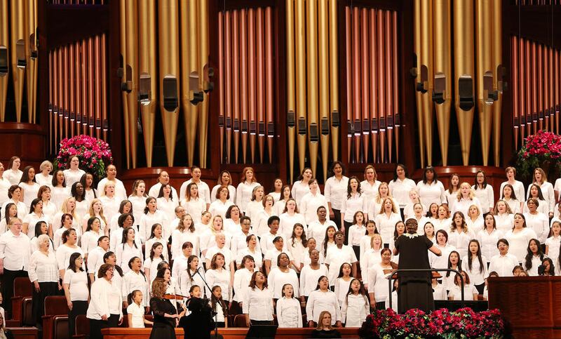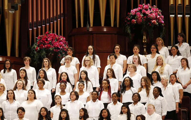 A unique choir at the session represented the languages and cultures of more than 50 countries. The choir, which included many members who are refugees, “symbolizes the worldwide unity we feel as daughters of God in the Gospel of Jesus Christ,” said Sister Rosemary M. Wixom, Primary general president, who conducted the meeting.