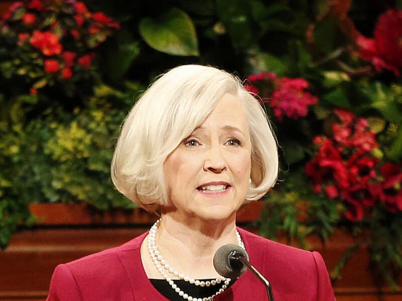 In addition to Sister Burton, President Henry B. Eyring, first counselor in the First Presidency; Sister Cheryl A. Esplin of the Primary general presidency; and Sister Neill F. Marriott of the Young Women general presidency also spoke. President Thomas S. Monson presided at the broadcast, which was also attended by President Dieter F. Uchtdorf, second counselor in the First Presidency; other church leaders; and members of the Relief Society, Young Women and Primary general presidencies and boards.