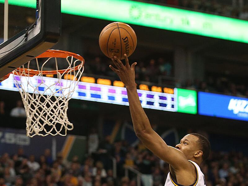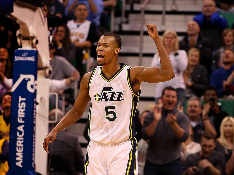 Overshadowed by Hood’s terrific game, er, half, were fine performances by several other Jazz players. Trevor Booker scored a season-high 17 points on 6 of 8 from the field while Rudy Gobert tied his season high for rebounds with 19. Shelvin Mack had another fine game with17 points, five assists and just two turnovers.
