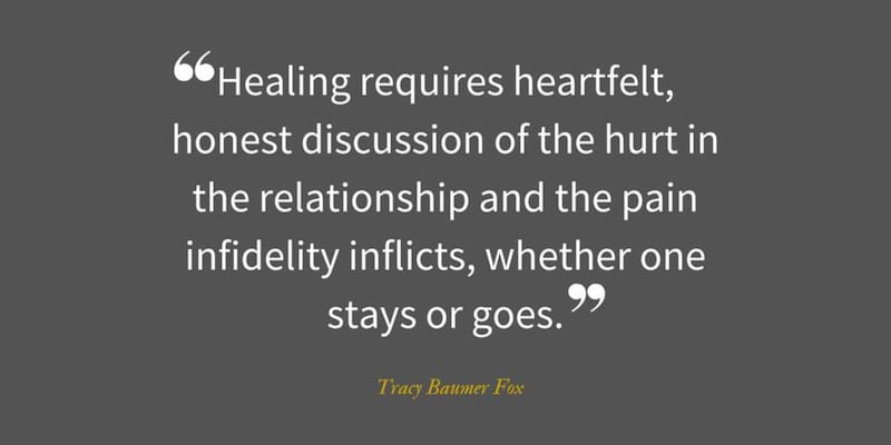Healing requires heartfelt, honest discussion of the hurt in the relationship and the pain infidelity inflicts, whether one stays or goes, she said.