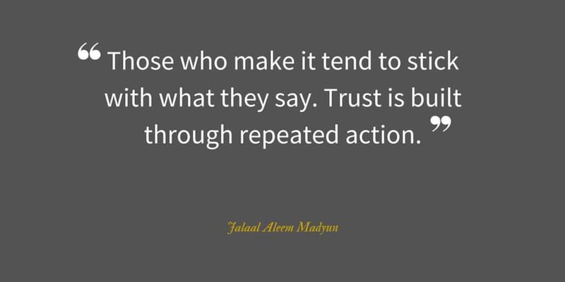 “Those who make it tend to stick with what they say. Trust is built through repeated action,” warned Madyun. “The things that are said and the things that are agreed to need to stay true over time.”