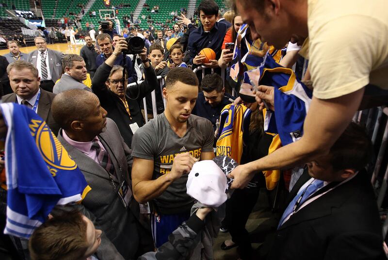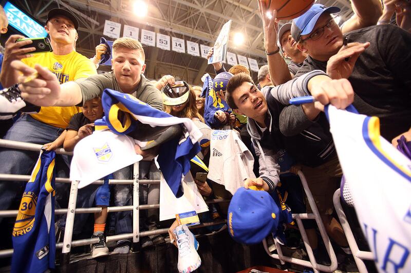 Curry signed a basketball, a shoe and a jersey to give to three of the fans.