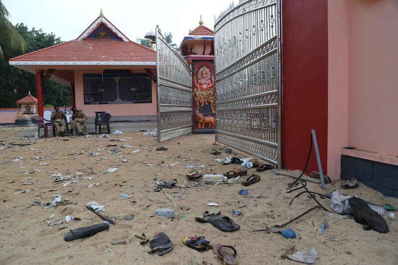 District authorities worried about safety had denied permission to the temple this year for its annual competitive fireworks show, during which different groups put on displays at the end of a seven-day festival honoring the goddess Bhadrakali, a southern Indian incarnation of the Hindu goddess Kali.