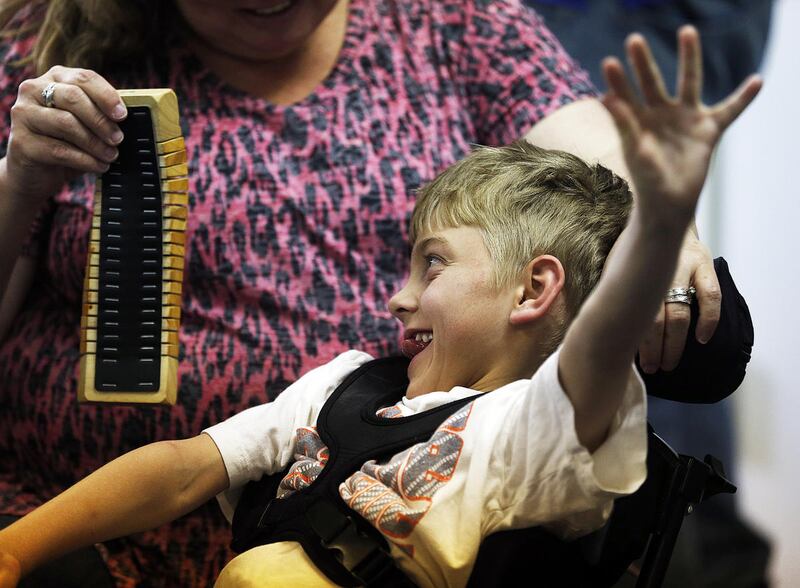"So he had a target and he touched it," Lighty said after a child reached out to strum the guitar. "He did need some help along the way, but he touched it and that's progress."