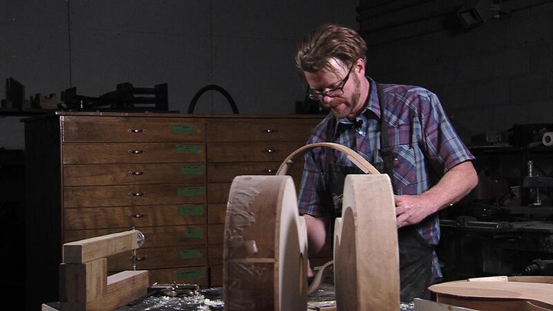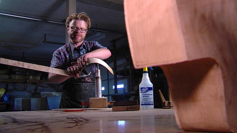 The challenge in the first phase of guitar-making is to get the right bend in the wood so it forms the sides of the guitar. If Thorell does it right, the piece of wood conforms to the familiar shape of a guitar. If he forces it too much, he winds up with something other than a guitar.