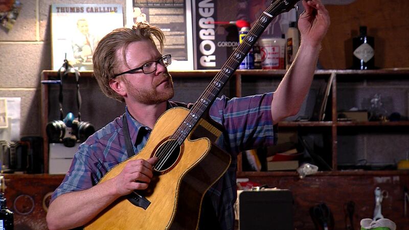 There are no crowds to watch or listen. The shop doesn't have Thorell's name in lights; there's not even a name on the outside of the building. But it is the venue where Thorell performs as a one-man-band in the guitar-making business.