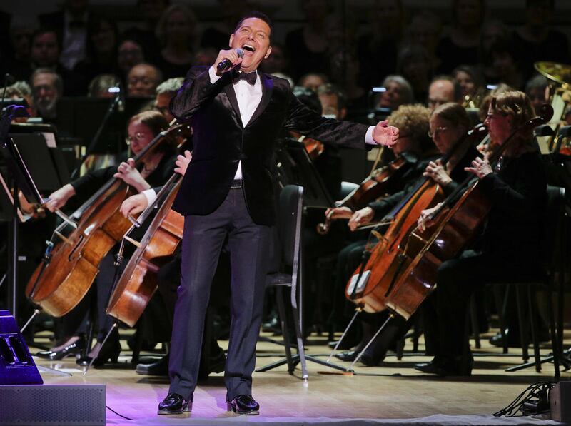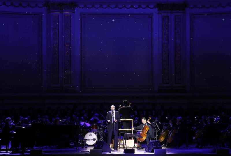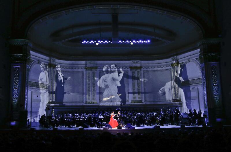 This program, which lasted a little more than 90 minutes, was more varied, starting with classical and moving onto Feinstein and Taylor. With Pablo Heras-Casado conducting the Orchestra of St. Luke's and the Oratorio Society of New York, Gere spoke between performances and listed many of Carnegie's most famous performers, such as pianist Vladimir Horowitz and violinist Jascha Heifetz. He recounted anecdotes accompanied by video projections of more than a century of photographs and programs.